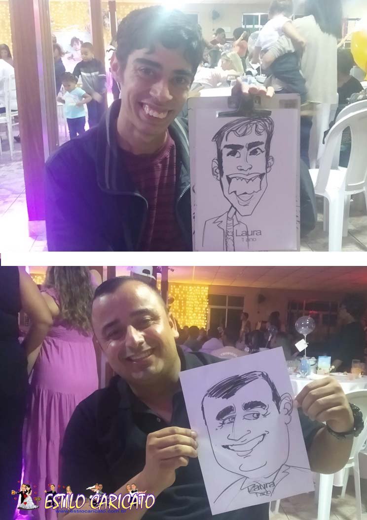 a caricatura dos seus convidados super simpáticos no salão salão de festa Duda e Bia Festas.