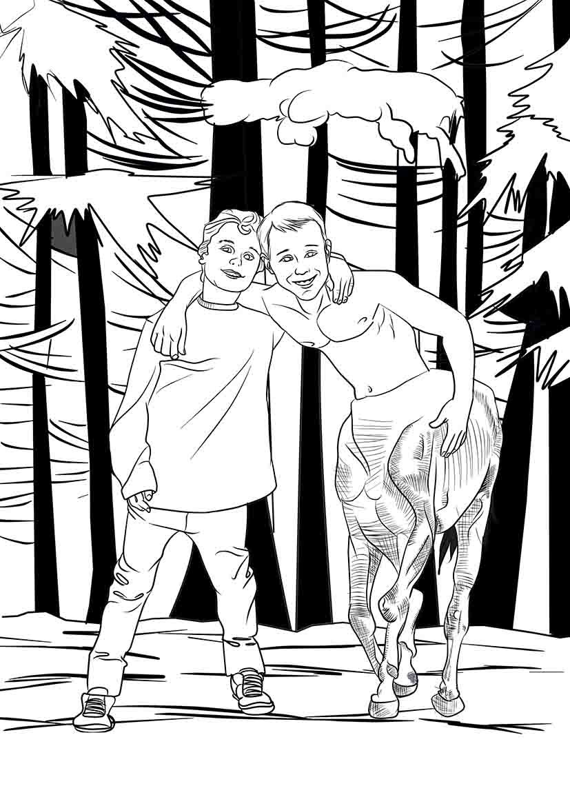Centauro – Ilustração criada para livro.. A cena conta com um centauro adolescente e seu amigo. Arte foi reprovada, já que o centauro deveria aparentar mais jovem, uns 11 anos. e nessa arte ele aparenta uns16 anos. Refiz a cena e deixei ele mais jovem. Arte final não pude postar aqui, mas o teste reprovado sim.