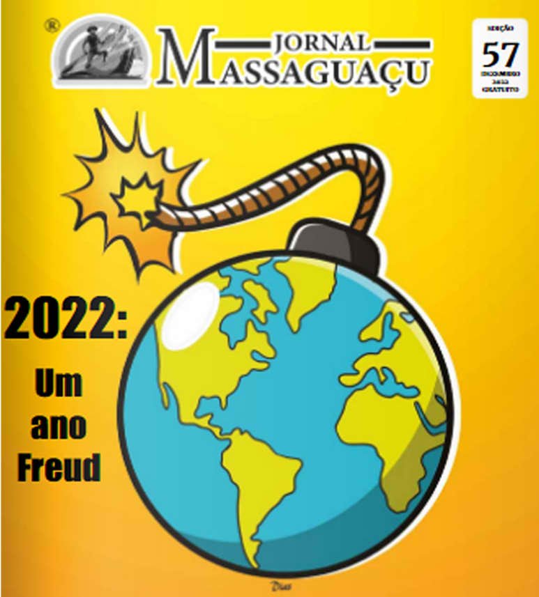 Ilustração Editorial: Capa de Dezembro do jornal Massaguaçu . A ilustração de capa resume bem como foi o ano de 2023. A capa combina com o texto do jornal da edição do mês de dezembro de 2022 aonde você confere aqui, na edição 57