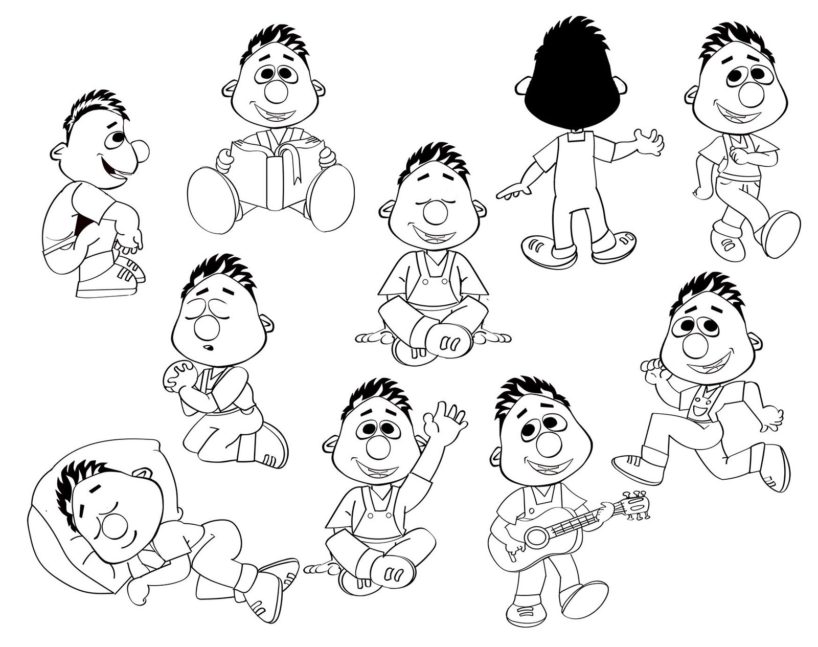 Poses de personagem em preto e branco criado para cliente.